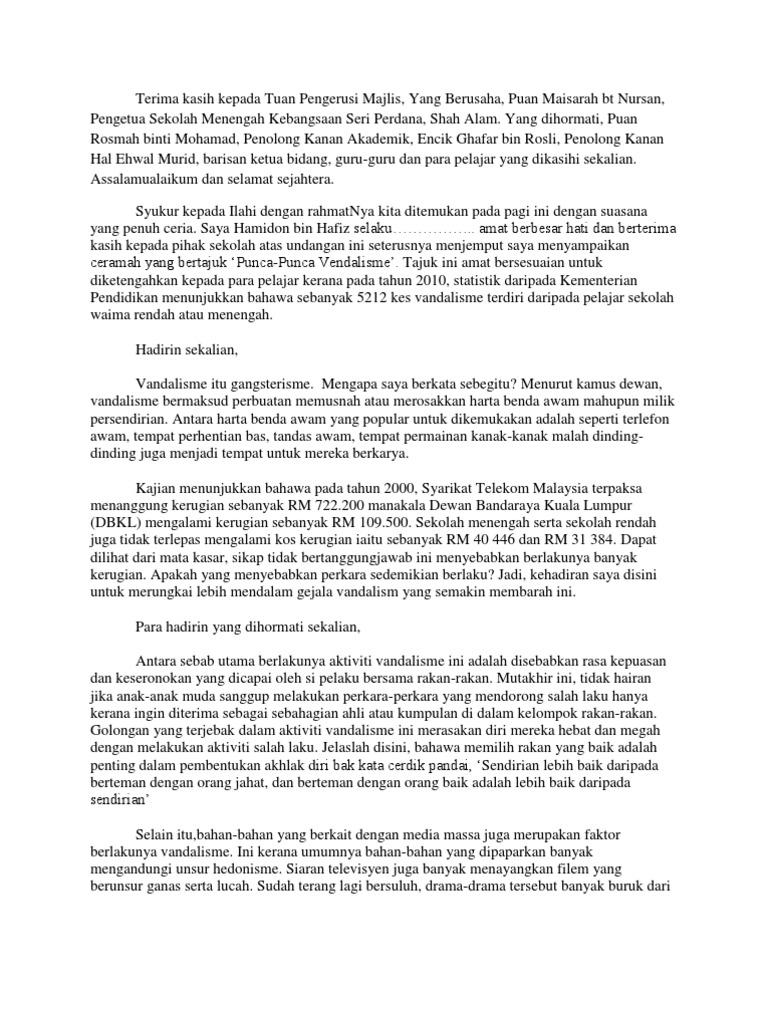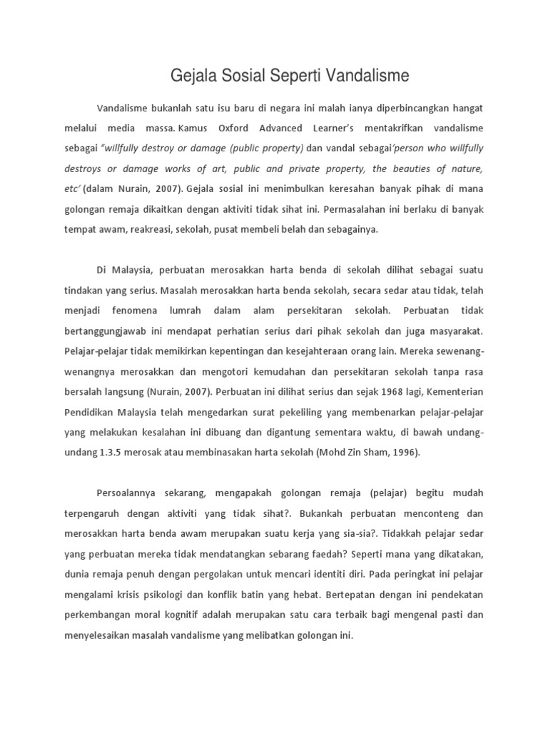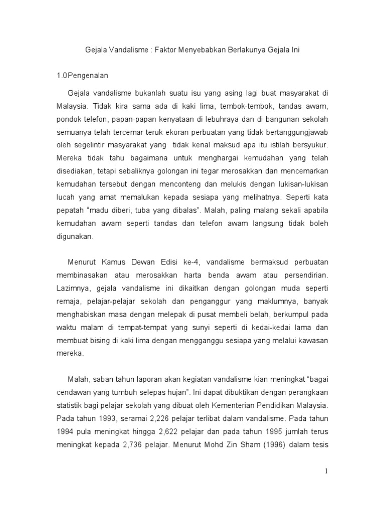 Masalah Ponteng Sekolah punca atau. Di samping itu masyarakat tidak harus berpeluk tubuh apabila gejala vandalisme menjalar dengan berleluasa di kawasan perumahan mereka. Norliza kasa menerbitkan Koleksi Idea Esei PA Sem 2 pada 2020-08-03.